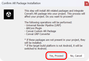 <figure><img src="https://413558230-files.gitbook.io/~/files/v0/b/gitbook-x-prod.appspot.com/o/spaces%2FEtUJA212Zc1S9ACc8T4l%2Fuploads%2F4ws6CGWsLFJ6zLxNKPSq%2FConvaiCustomPackageInstallerConfirmWindowAR.png?alt=media&#x26;token=56e44ae6-4e61-4a0a-97b0-d2a4b1f87c6a" alt=""><figcaption></figcaption></figure>