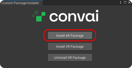 <figure><img src="https://413558230-files.gitbook.io/~/files/v0/b/gitbook-x-prod.appspot.com/o/spaces%2FEtUJA212Zc1S9ACc8T4l%2Fuploads%2Flwyrdwq0Bhq58VGc9Bjh%2FConvaiCustomPackageInstallerWindowAR.png?alt=media&#x26;token=0a8e168d-3209-4723-9e09-9fb53f1f1ca5" alt=""><figcaption></figcaption></figure>