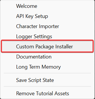 <figure><img src="https://413558230-files.gitbook.io/~/files/v0/b/gitbook-x-prod.appspot.com/o/spaces%2FEtUJA212Zc1S9ACc8T4l%2Fuploads%2F4BazfdKyrlQmFxtH1ymu%2FCustomPackageInstaller.png?alt=media&#x26;token=1d167603-0b8d-416f-8004-acbb88cc8e11" alt=""><figcaption></figcaption></figure>