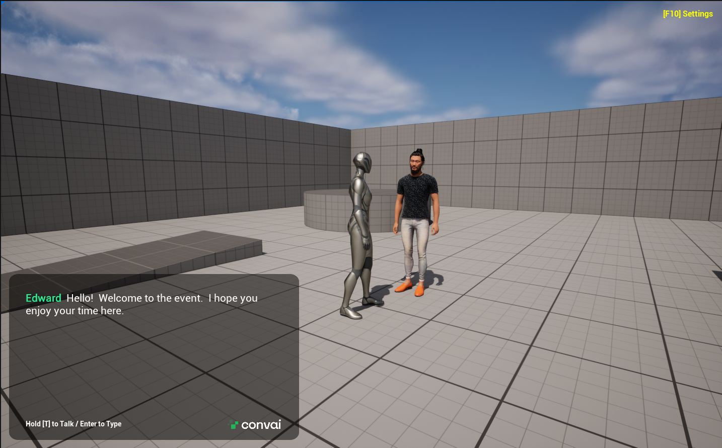 10. On approaching a certain vicinity will trigger the event and the Convai Character will greet the character as mentioned in the Trigger Message.&#x20;